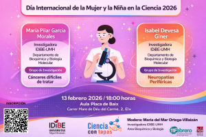 El IDiBE organiza una nueva Ciencia con Tapas con motivo del «Día internacional de la mujer y la niña en la ciencia» y en la que van a participar las investigadoras del IDiBE, Pilar García e Isabel Devesa, que van a hablar sobre su trayectoria profesional y sobre sus líneas de investigación. La jornada será presentada por el director del IDiBE, Antonio Ferrer, y moderada por María del Mar Ortega-Villaizán.